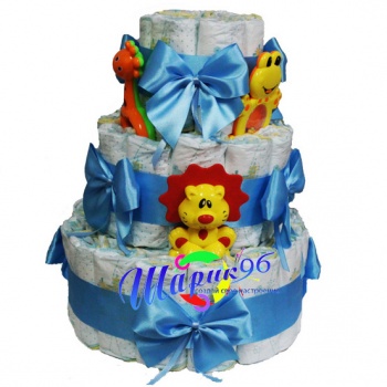 Подарите оригинальный тортик из памперсов (подгузников) на выписку из роддома, на «кашу» или крестины. В состав входят выбранные Вами подгузники. Торт состоит из нескольких слоев памперсов, украшен декоративными лентами, бантами, аксессуарами и т.д. Сделана декоративная упаковка из целлофана. Каждый набор будет собран исключительно для Вас и будет содержать те предметы, которые Вы хотели бы видеть в вашем наборе. Возможно разное количество слоёв, любое цветовое решение, игрушки, детские товары, предметы гигиены.